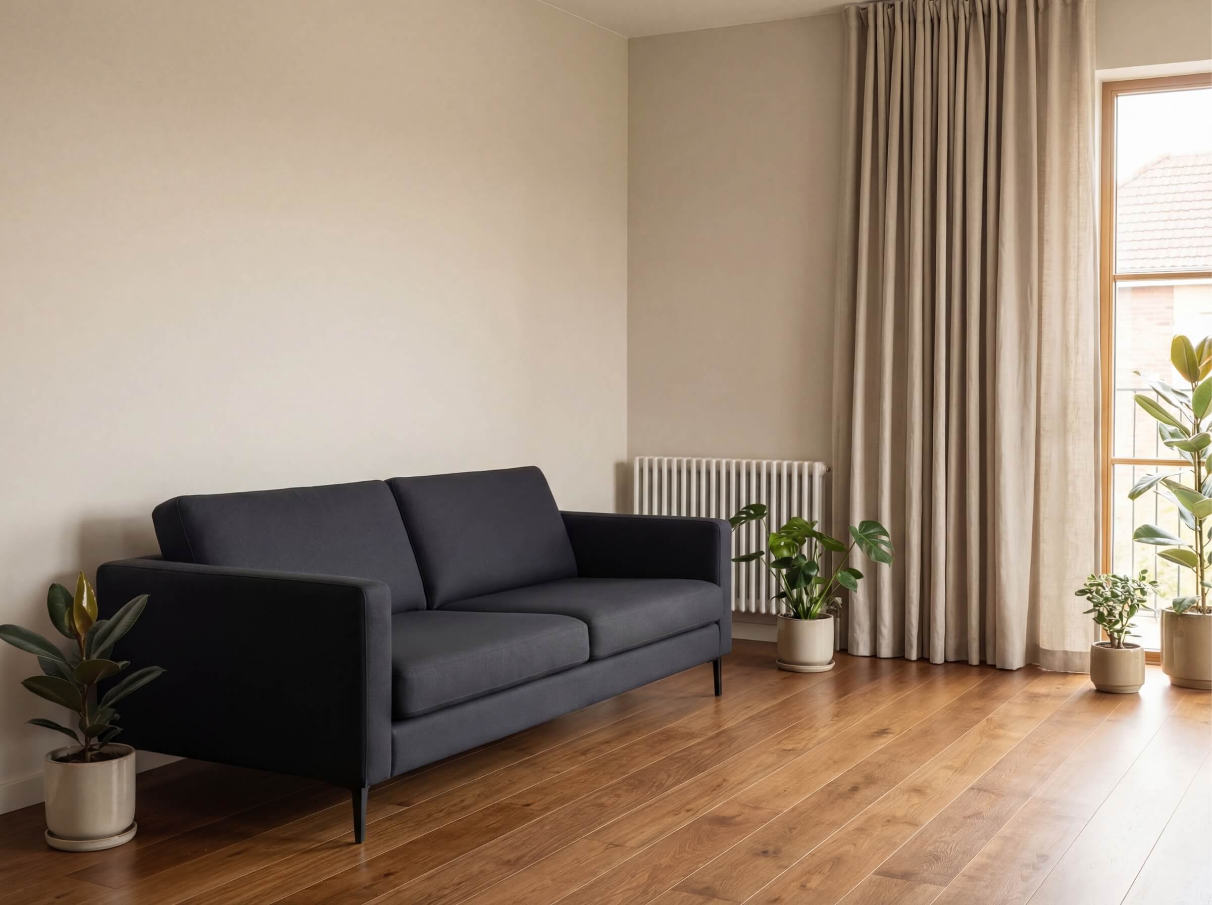 Ihre Möbel beeinflussen die Wärmeverteilung: Halten Sie Heizkörper frei von Möbeln, Vorhängen oder Verkleidungen, damit sich die Wärme ungehindert im Raum verteilen kann. Platzieren Sie Möbel mit 5 bis 10 cm Abstand zur Außenwand, um die Luftzirkulation zu fördern und Schimmelrisiken zu minimieren. Auch Vorhänge sollten Wand und Boden nicht berühren. Reduzieren Sie in wenig beheizten Räumen die Anzahl der Zimmerpflanzen, da diese die Luftfeuchtigkeit zusätzlich erhöhen können.